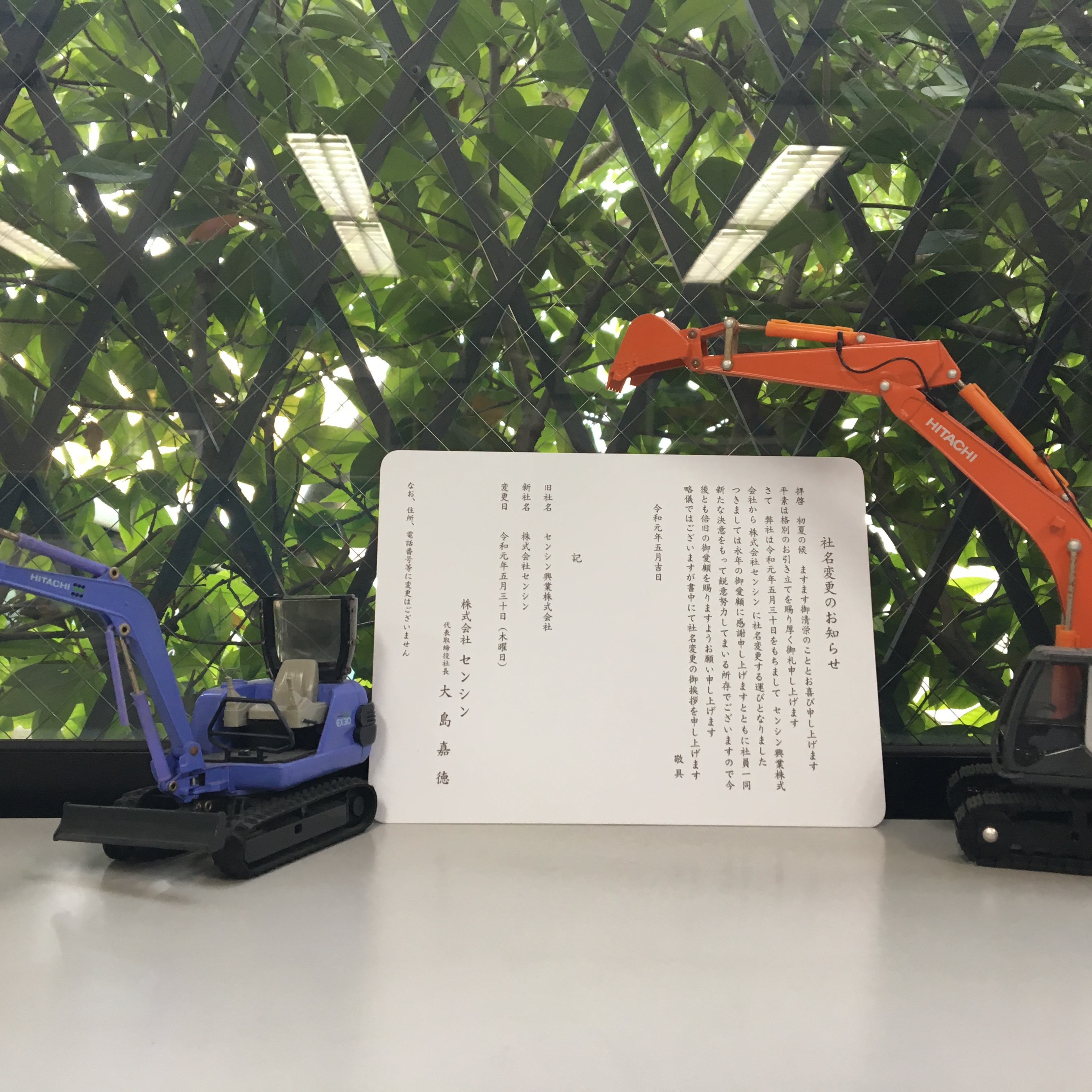 弊社は令和元年5月30日よりセンシン興業株式会社から株式会社センシンに社名変更致しました。