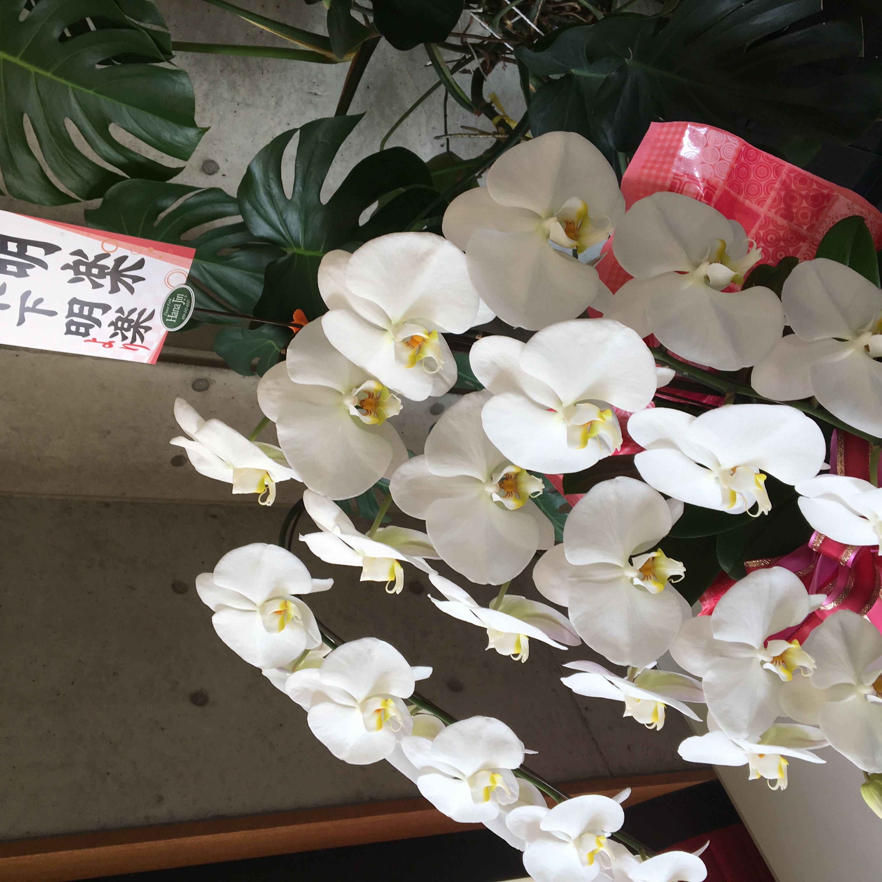 先日、社名変更を致しましたがお祝いのお花を頂戴いたしました。