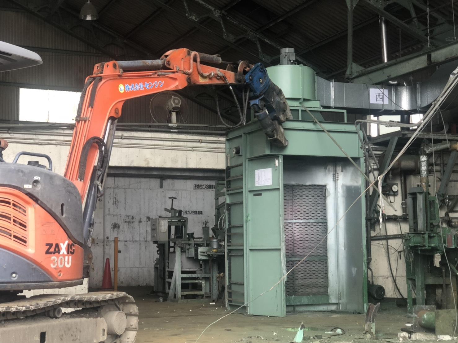 0.1㎥の小型重機と鉄骨カッターを用いての作業です。
