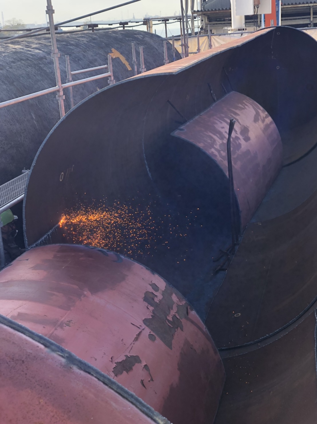 さて先日、100tタンクをガスで切断する作業をして参りました。