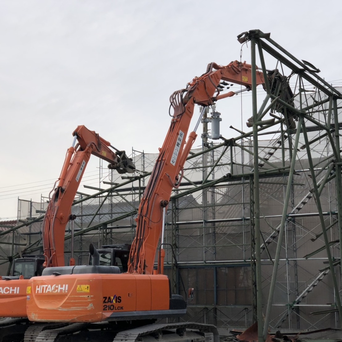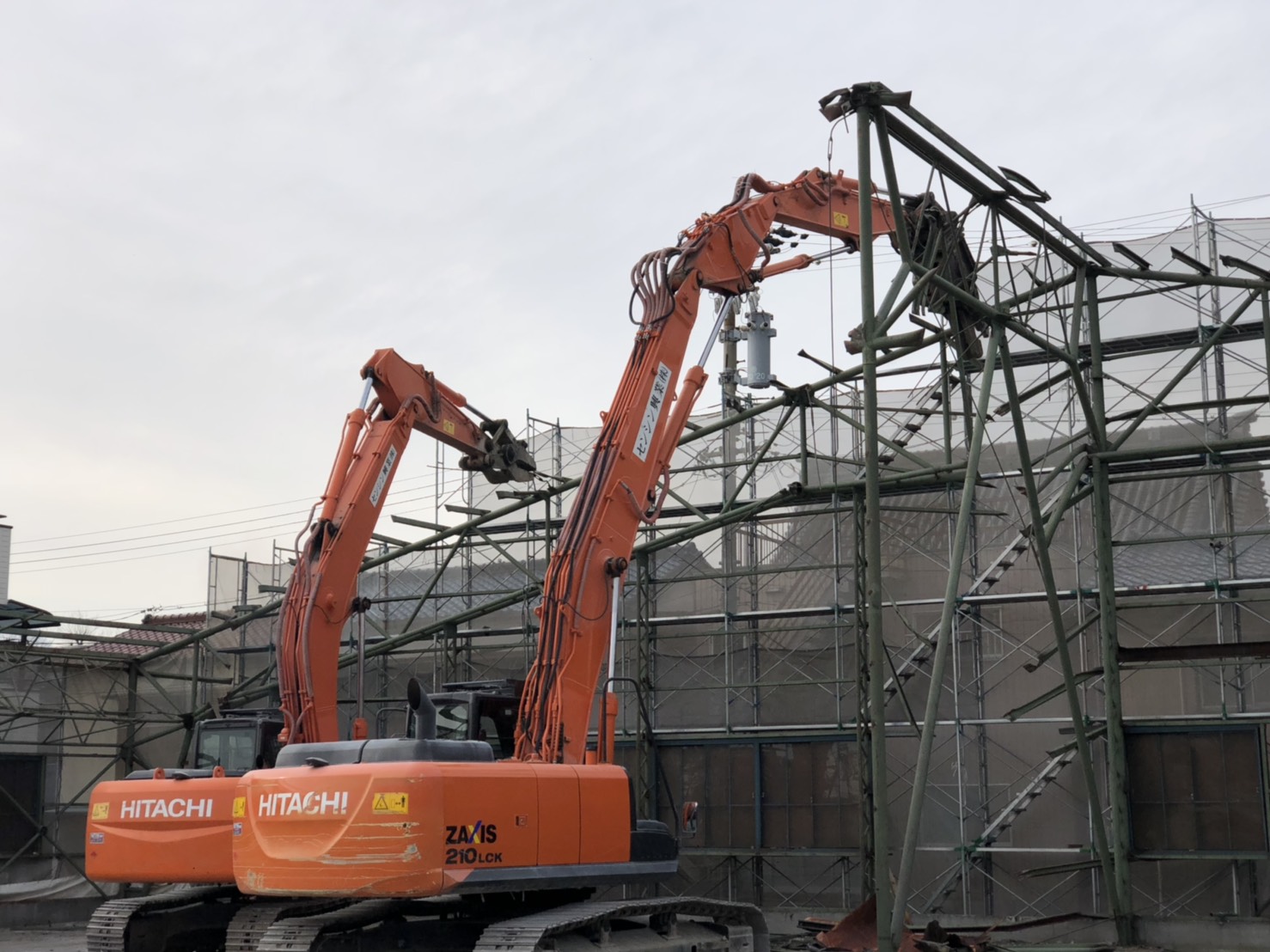 0.7㎥の重機と0.7㎥のハイリフト重機を使っての併用作業です。