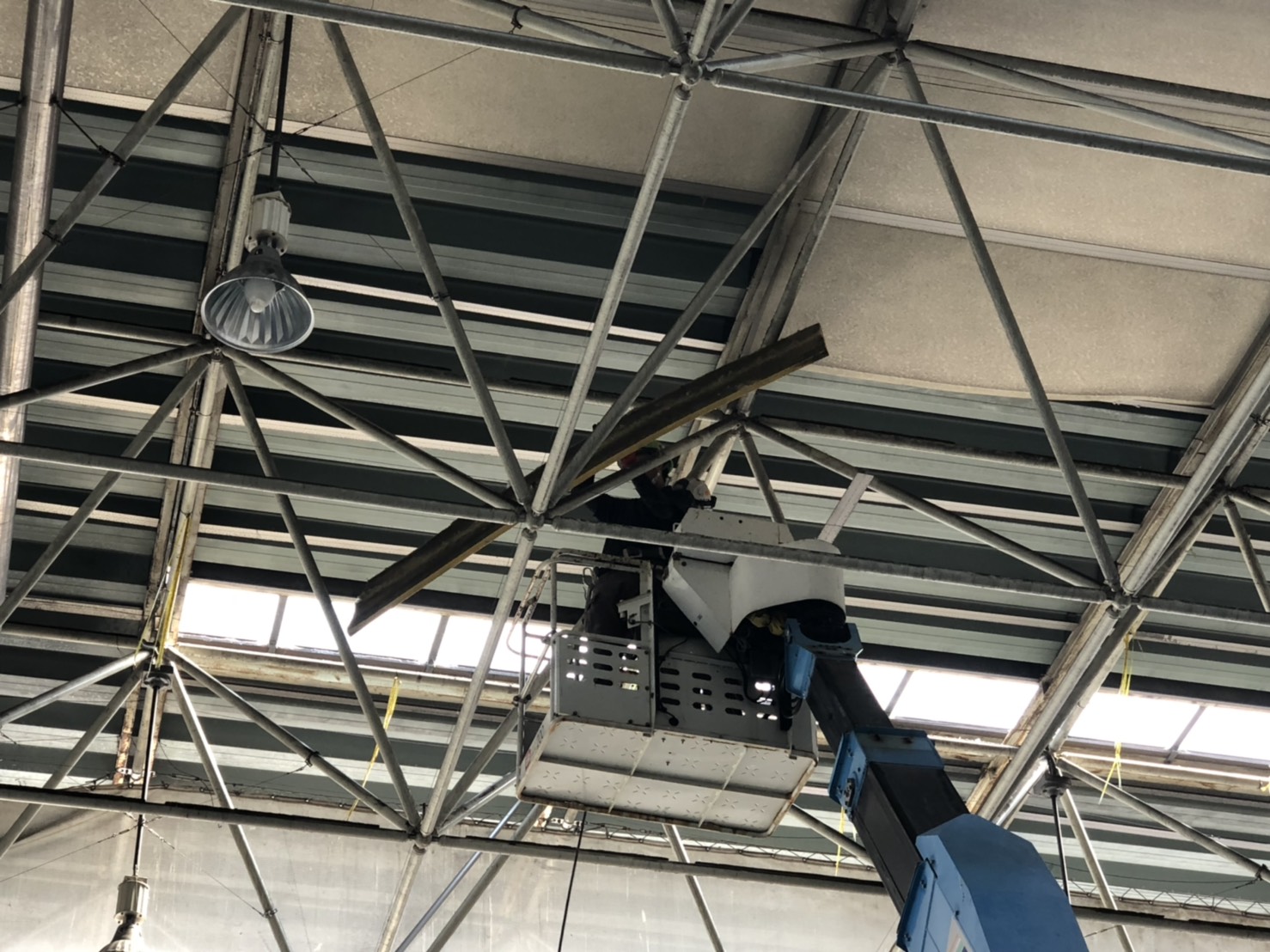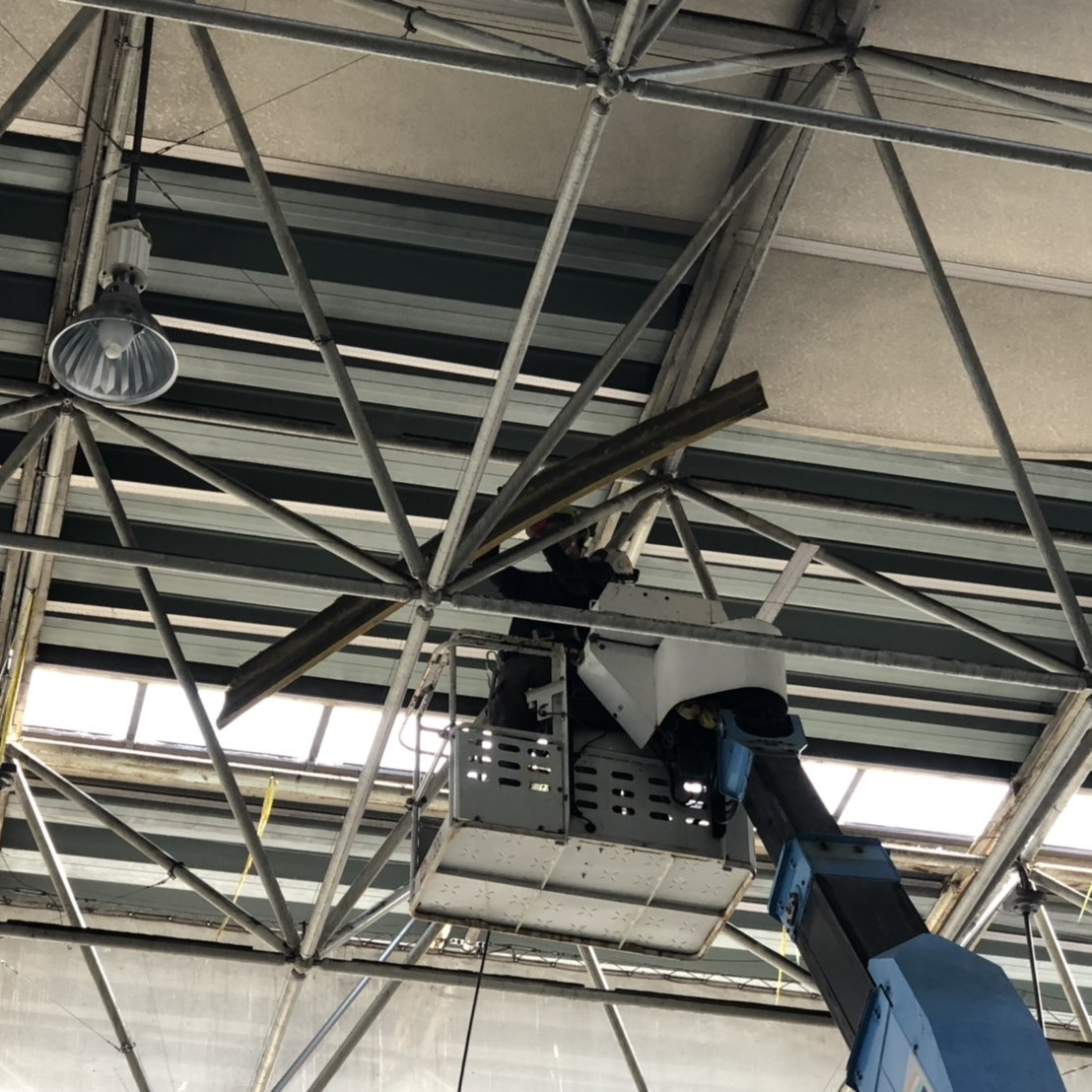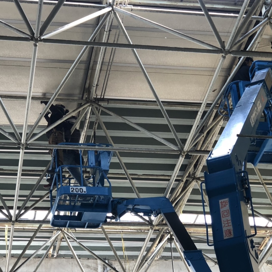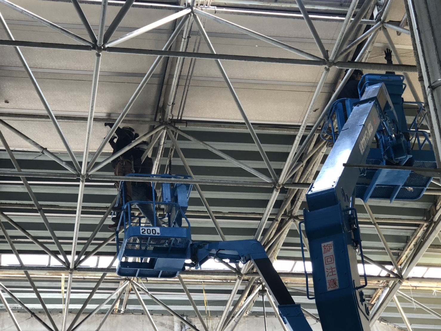 12mの高所作業車2台と18mの高所作業車1台を使っての作業でした。