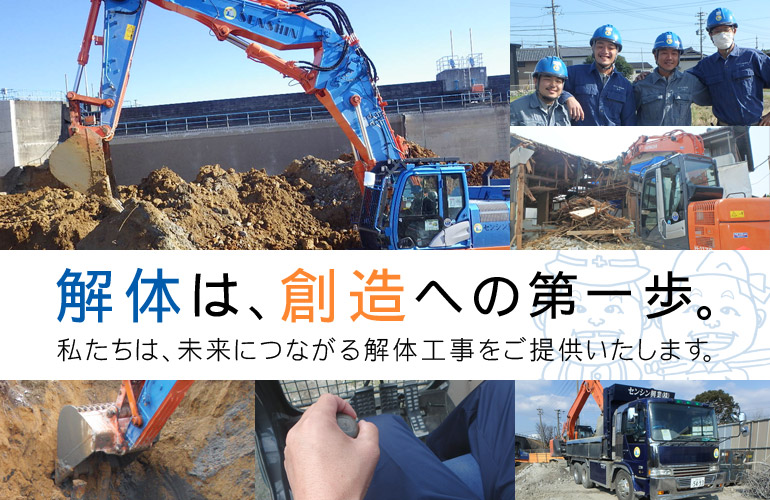 センシンは三重県四日市市の解体工事業者です。お客様第一主義で、丁寧で安全・迅速な解体工事をご提供します。